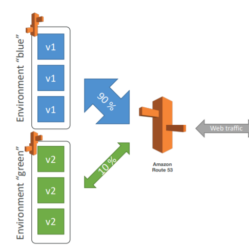 Route53의 가중치 트래픽관리 기능을 통해 카나리 배포와 같이 트래픽을 점진적으로 v2로 증가시킬수 있음