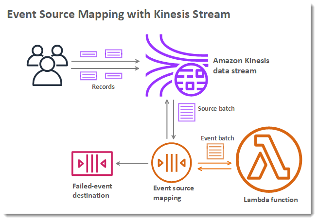 - Amazon Kinesis : 데이터 스트림에서 레코드를 읽고 스트림 레코드를 포함한 이벤트와 동기적으로 함수를 호출