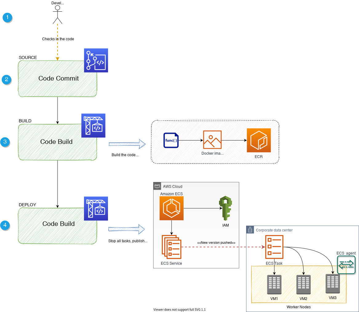 AWS에서 기본적으로 가이드하는 ECS/ECR CI/CD Pipeline은 다음과 같다.