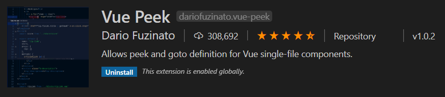 Vue Peek 플러그인은 코드상에 작성되어 있는 Vue 컴포넌트를 통해 해당 컴포넌트 파일을 열고 그 파일로 이동할 수 있는 기능을 제공하는 플러그인이다.