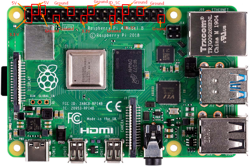 5V 핀 : 5V 핀은 Type-C 포트에서 제공하는 5V 전원 공급 장치를 출력하는 데 사용됩니다. 핀은 Raspberry Pi 4 장치에서 2와 4로 번호가 매겨져 있습니다.