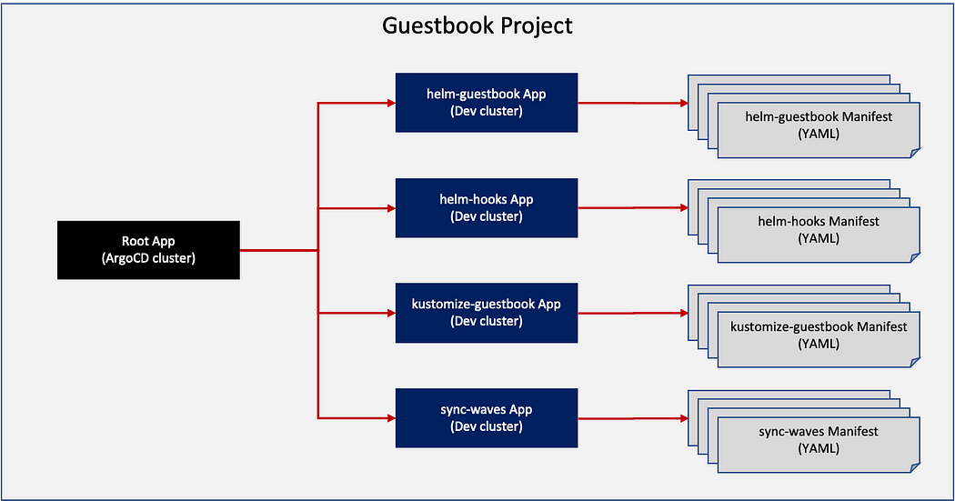 필자의 생각으로는 App of Apps Repository에는 Application Profile에 대한 내용들만 갖고 있고, 실제 각 모듈의 k8s 구성요소는 각자 Repository를 갖고 있는것이 좋아보인다. 그리고 Application Profile에서 참조하는 각 모듈의 Git 주소를 values.yaml에 변수화 해서 갖고 있으면 이상적으로 보인다.