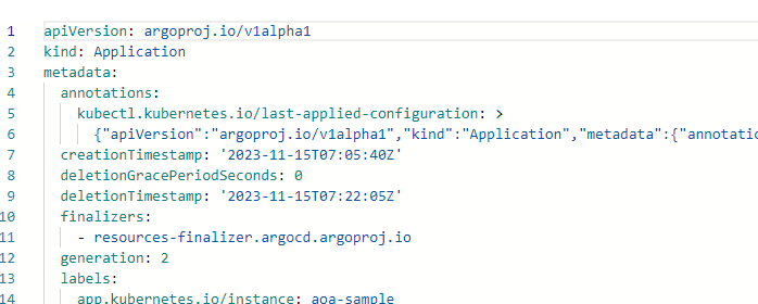 특히 ArgoCD의 Application을 삭제할때 OutOfSync 상태, Deleting 으로 빠져있는 경우가 있다.