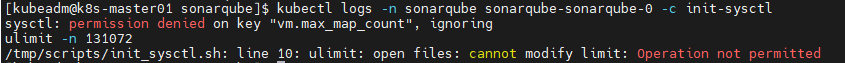 ## kubectl logs -n sonarqube sonarqube-sonarqube-0 -c init-sysctl
