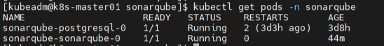 $ helm upgrade --install -n sonarqube sonarqube sonarqube/sonarqube