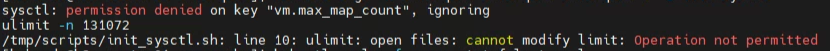 sysctl: permission denied on key "vm.max_map_count", ignoring