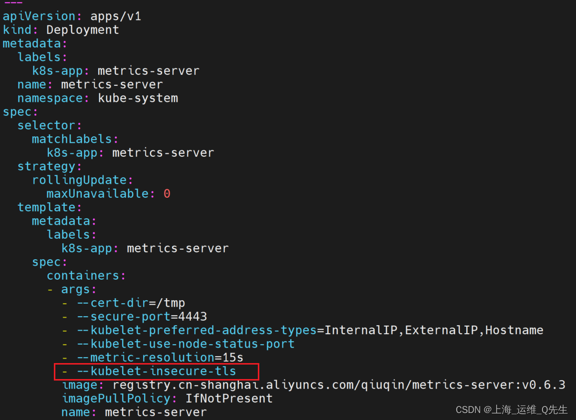 k8s metric 서버 설치시 위와 같은 오류가 발생하게 되면 metric-server deployment에 tls설정을 해지한다.