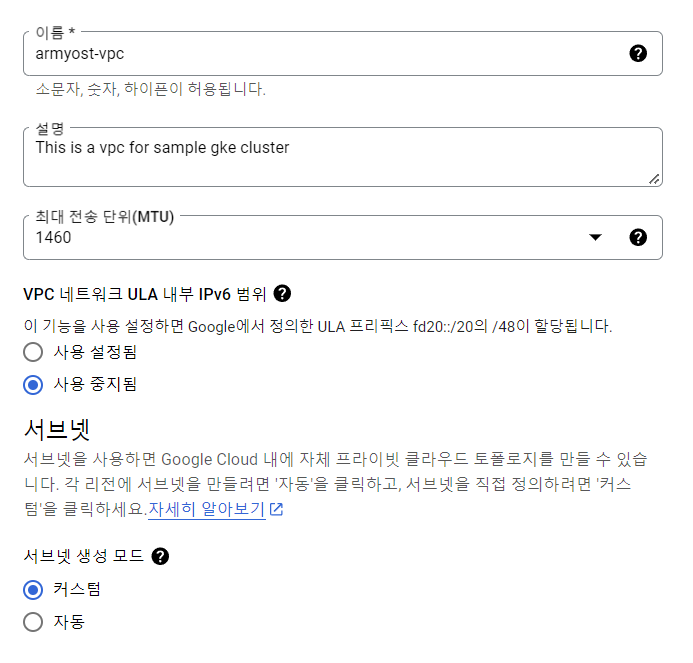 ※ 특이점 : AWS와 다르게 Private Subnet에 대한 개념이 약하다. 그리고 Network 리소스 컨트롤이 Systematic해서 직접 못하는게 많다. private-subnet 에서 Internet Gateway를 야에 명시적으로 빼고싶다..