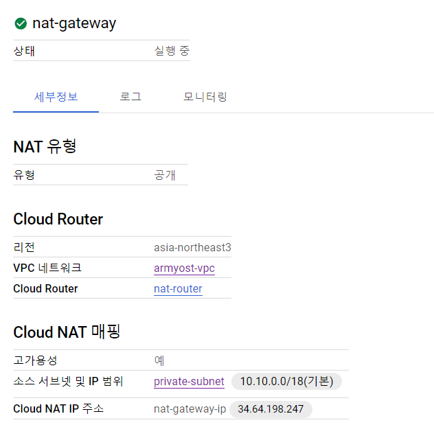 $ gcloud compute addresses create nat-gateway-ip --region=asia-northeast3