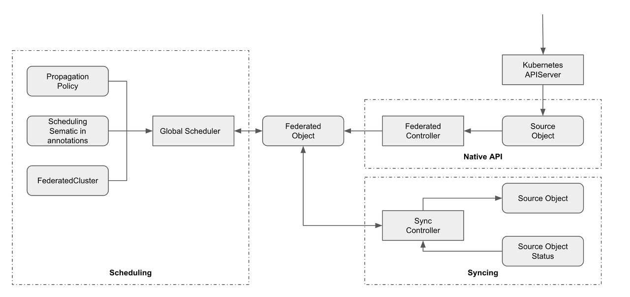 KubeFed는 Replicas 기반 워크로드를 위한 RSP Scheduler를 제공하지만 사용자 정의 가능성과 확장성이 매우 제한적이며 동작을 수정하려면 코드 수정이 필요합니다. 또한 다양한 Scheduling 의미 체계가 필요한 Stateful한 서비스, Job 형식의 리소스 등에 대한 지원이 부족합니다.