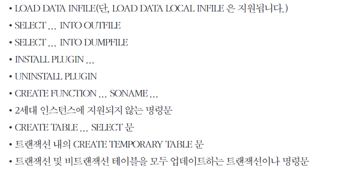 일반적으로 Cloud SQL인스턴스에서 제공하는 MySQL 기능은 로컬에서 호스팅 되는 MySQL과 기능은 동일하지만 몇가지 차이점이 있습니다.