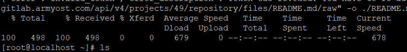 $ curl -L --header "PRIVATE-TOKEN: PUT_ACCESSTOKEN_HERE" "http://gitlab.armyost.com/api/v4/projects/49/repository/files/README.md/raw" -o ./README.md