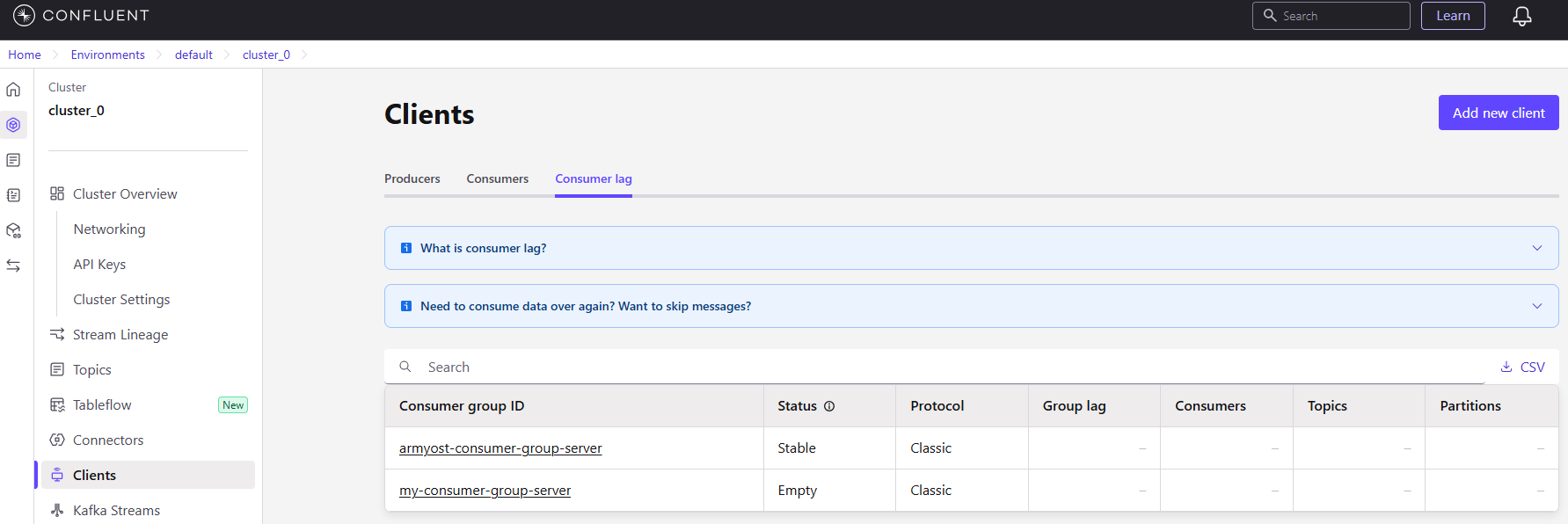 Consumer Group이 등록되면 아래와 같이 Clients에 표시된다.