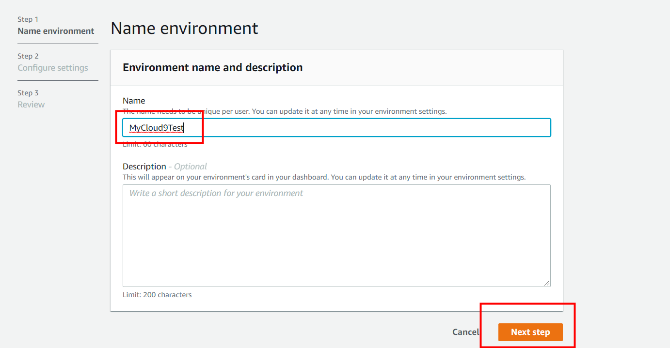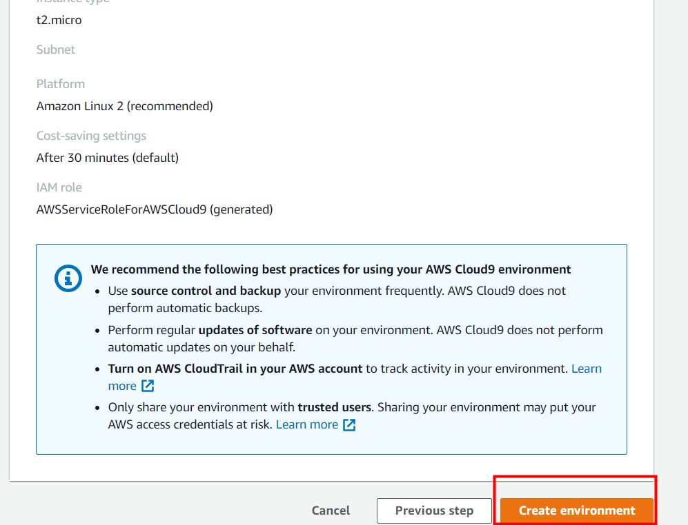 4. Create Environment를 클릭합니다.