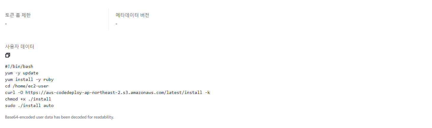 ※ '추가구성' 섹션의 '고급 세부정보'에서 '사용자데이터' '텍스트로' 를 선택하고 아래 CLI를 입력합니다.