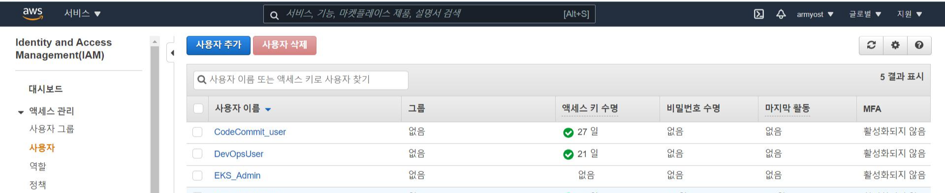 시작전 EKS관리자 계정을 생성하고 시작하세요. 추후에 EC2에서 aws authentication이 있습니다.