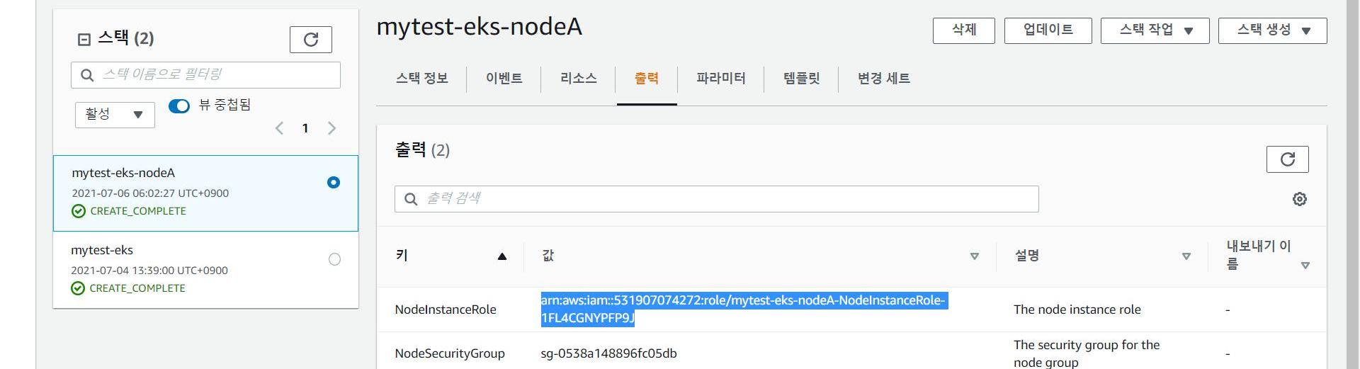 예) arn:aws:iam::531907074272:role/mytest-eks-nodeA-NodeInstanceRole-1FL4CGNYPFP9J